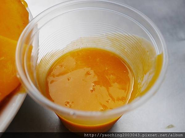 芒果吃完已經很飽,牛奶冰還有怎麼辦?加入店家給的芒果醬杯,請店家封杯後,