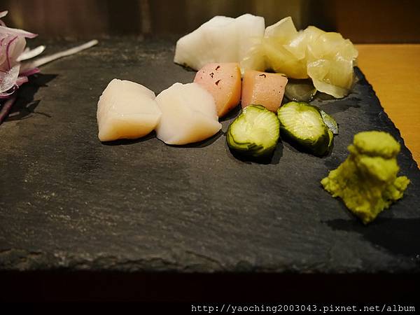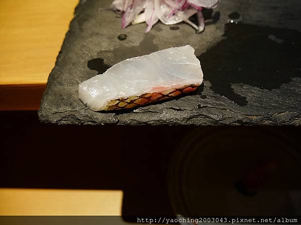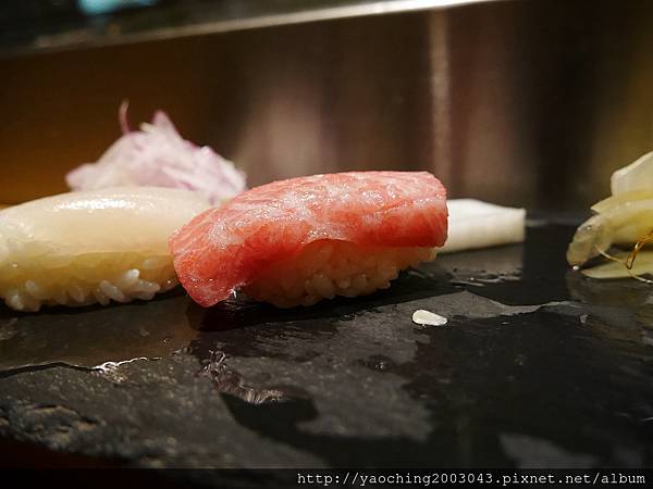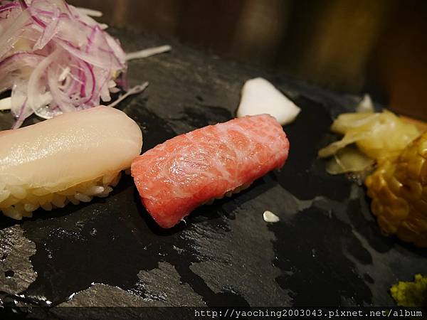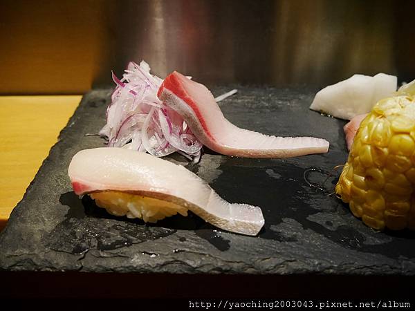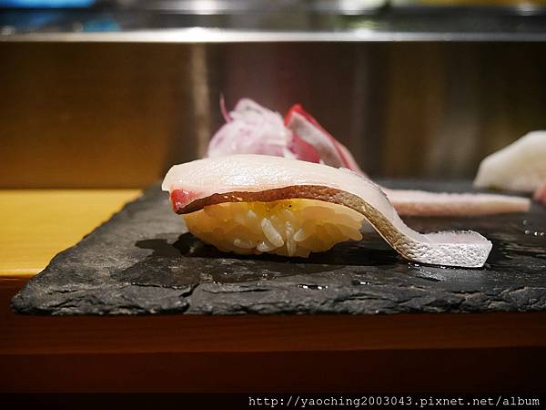 類,口感上Q一點醋飯份量也剛好搭一點現磨山葵挺好,而鰤魚腹入口則比較細緻,