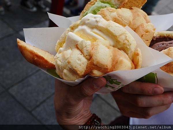 菠蘿很燙手還要把冰淇淋夾進去一整個就是日本的的菠蘿油,難怪冰淇淋很快就溶化