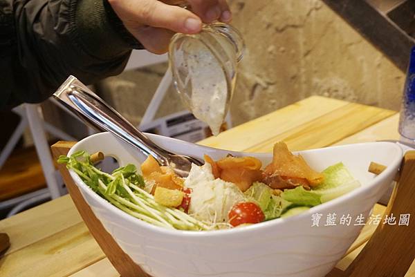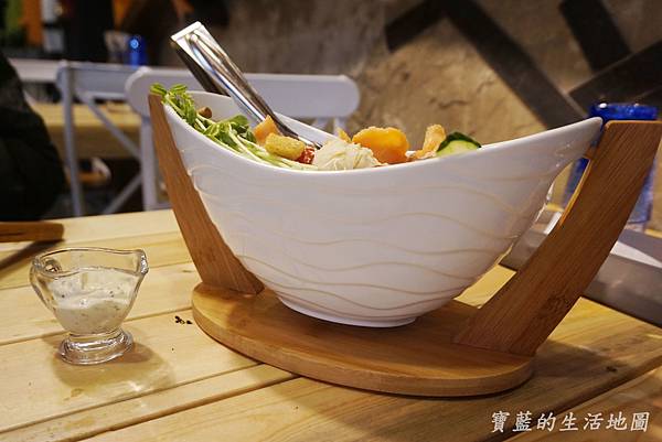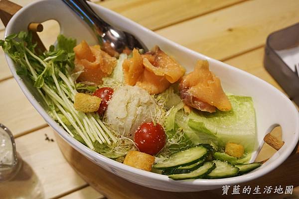 很特別地裝盤方式凱薩鮭魚沙拉,超大份的沙拉,大概要2~3人才吃的完
