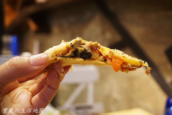 燻雞上有一層厚厚起的起司,披薩是屬於法式薄式脆皮的雙層餅皮