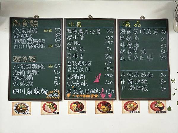 食八方販售的種類有飯、麵、煲湯跟一些小菜。