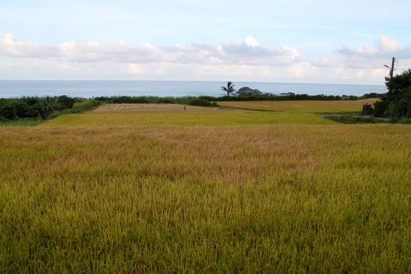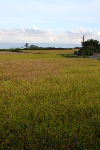 第二次走訪這裡是七月初,其實花東地區第一期稻作大約在六月下旬就開始收割,莎娃綠岸下方好幾塊稻田裡的稻子因為收割機調度問題,所以遲遲未收割。主人跟我說,這些稻子都採有機方式栽種,稻子成熟時,麻雀特別喜歡來吃,所以每年的收成量當然不會太豐富,只是採用有機方式栽植,加上用日光曝曬,去殼後的稻米特別好吃,這就是花東海岸公路上稻米珍貴之處。我在台東長濱長光山上的農地也是租給當地原住民種稻,稻子成熟後,我一整年都可以吃到新鮮、無農藥的稻米。