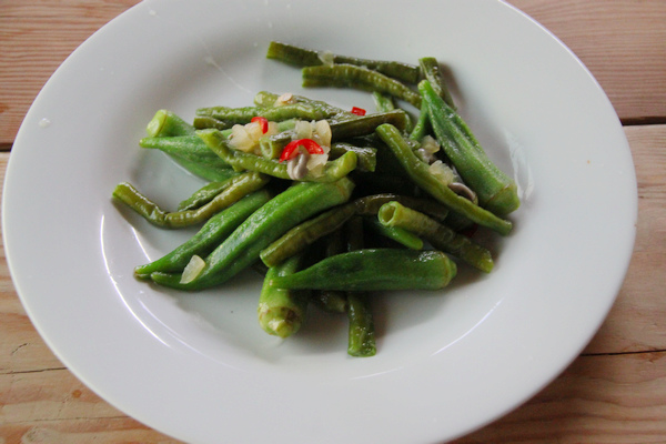餐點提供的魚類大都出自附近的石梯坪漁港,所以非常新鮮。至於蔬菜,除了一部份向菜販購買外,大都是主人自己栽種的。主人除了種稻子外,還有一塊地專門種植蔬菜、蕃茄,而且堅持採原住民的習慣,用有機的方式來栽植,主人農地所生產的蔬菜還特別申請有機認證,所以來此用餐的朋友經常可以吃到主人親手栽植的有機蔬菜。像這趟來吃到的四季豆,就是純有機的,口感超甜的,是一般在都市裡吃不到的。這裡的有機蔬菜,有部分是有宅配接送訂購的。