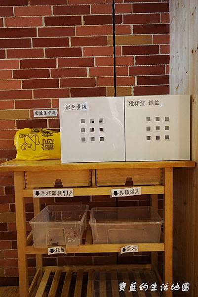 回收區,使用後的任何器上都要分類好放置在這兒,方便服務生幫忙後續整潔哦~