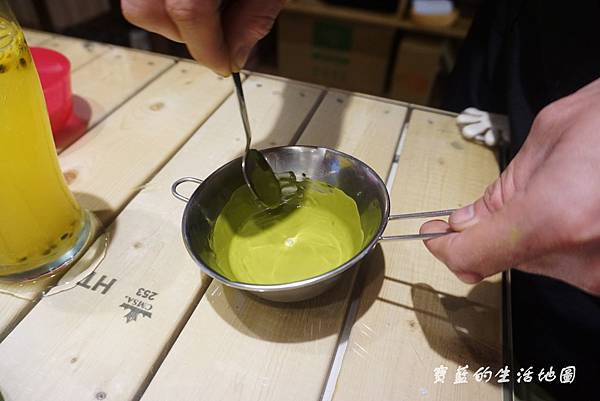 準備要繪置在巧克力上的抹茶巧克力~