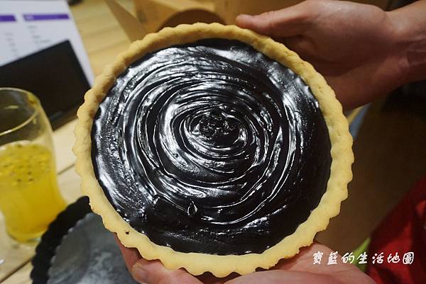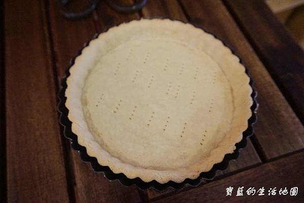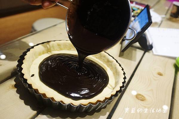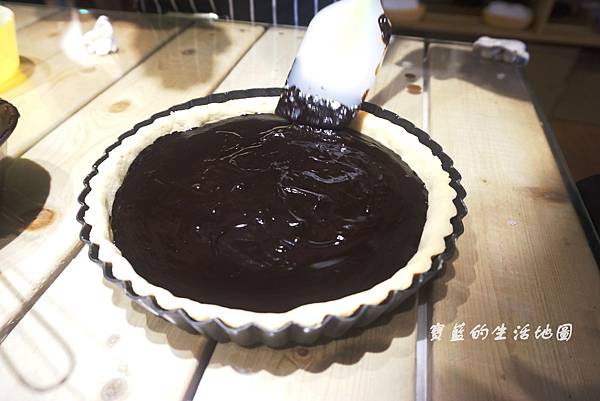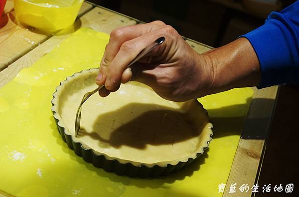 友人另外飛速又做了生巧克力塔,製作派皮的過程,最後要用夾子在上面戳洞哦~