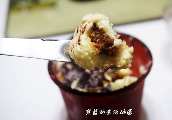 這個提拉米蘇吃起來很滑順,吸附咖啡液的手指餅乾也變得很鬆軟的海棉蛋糕