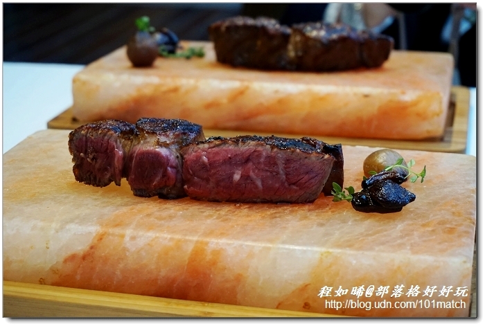 還有個耐人尋味的問題是,放在岩鹽磚上的牛排,會不會愈來愈鹹呢?答案答然是肯定的唷!所以上桌後,最後馬上完食。像如晞這種一直拍一直拍的部落客,最後的下場是將牛排換到瓷盤上。