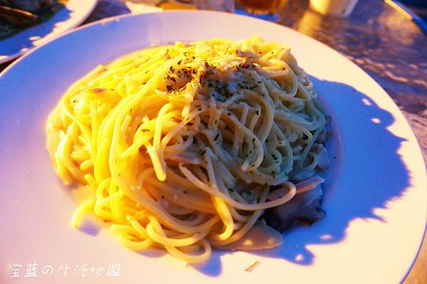 宝藍白醬的部分,覺得醬汁被收的太乾了,麵也有一點點偏硬的口感