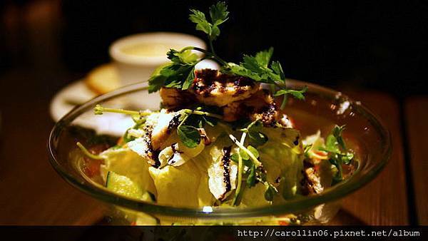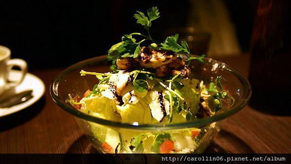 嫩煎雞肉佐義大利巴沙米可沙拉,因為我不吃沙拉,所以看到份量居然這麼大一份,男友就覺得他要辛苦了XD