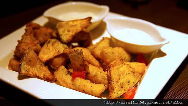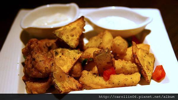 前菜我們選了塔塔醬多利魚,不過這盤裡面不是全都是多利魚,變成雙拼了!