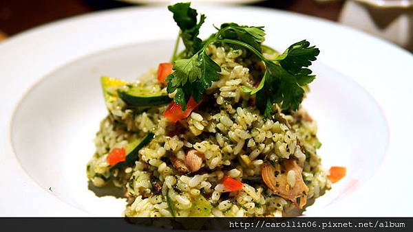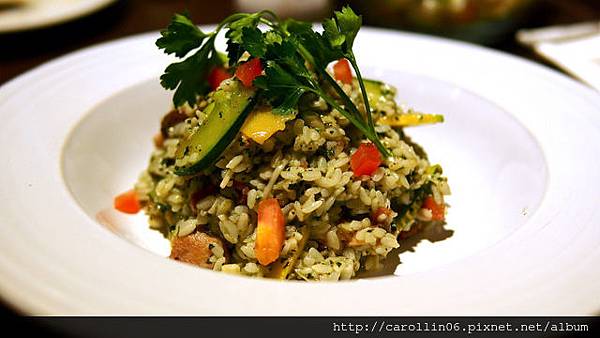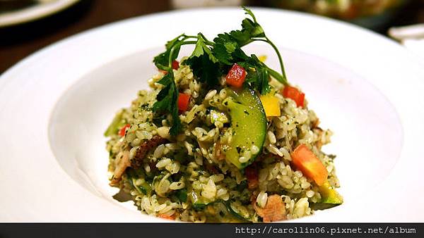 沙拉使用的自然就是義式醋的口味了,青菜口感還是脆的,只是醬的量可以再多一些,不然這麼大一碗有點難攪拌到每口都有醬料味道。