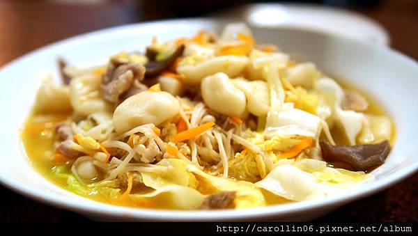 木須炒貓耳朵,味道我不是太喜歡,也感覺稍油。貓耳朵本身沒有煮透,雖然不會軟爛,但那口感也並不能稱做Q,姑且稱它們只是多了點咬勁吧。