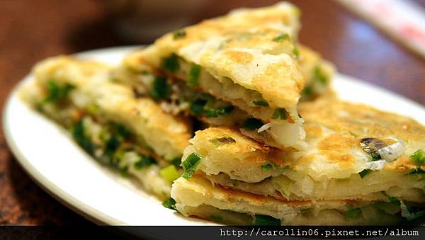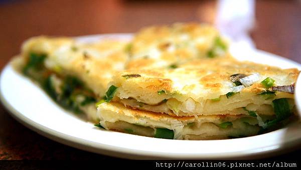 因為好像現弄的蔥油餅是招牌之一,男友就點了一整張來。