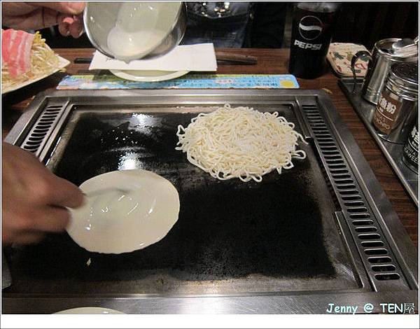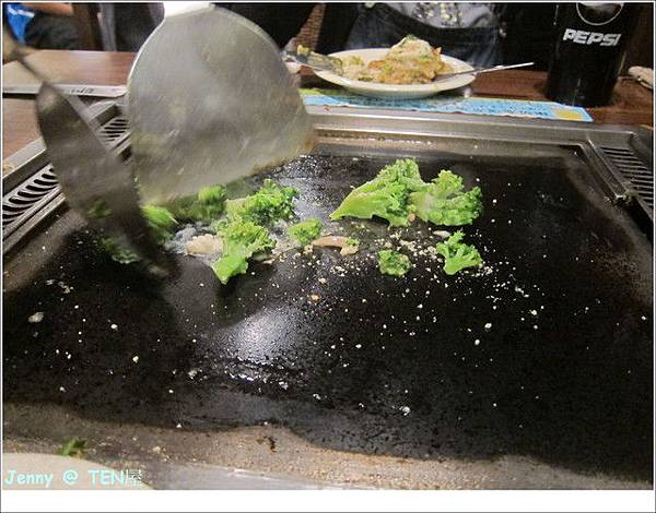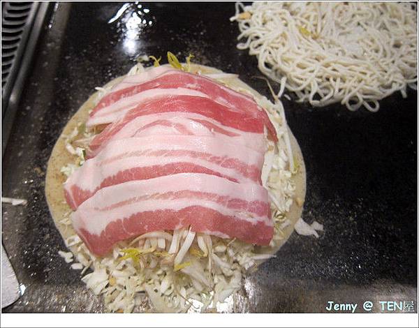 這個店員動作太快,我完全還來不及拍攝食材,他就乎哩撲哩的往鐵板裡面放進去
