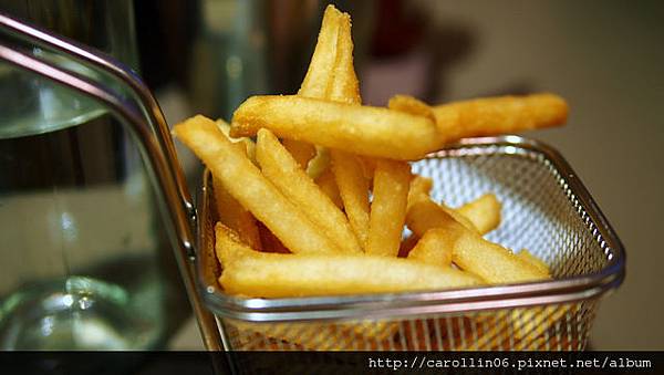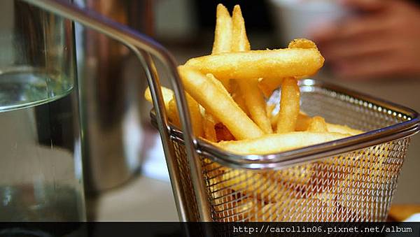 薯條裝在這種炸薯條用的器具裡相當有趣,看起來頗有炸好直接上桌的感覺,光看就覺得酥脆、熱騰騰~