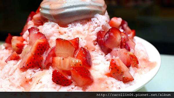 這份是「草莓芝麻布蕾雪花冰」,我個人覺得比較特別的是上面搭芝麻布蕾。