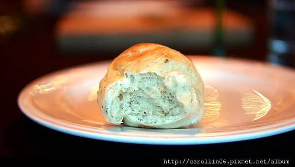 相較於以前在星巴克無聊點來試試的義式香料麵包,這個麵包的香料味淡很多,但這畢竟是搭配那沾醬吃的,味道要是重了、搶味了可不大好。醬的味道香濃不膩,蟹肉比例也讓人滿意,嚐第一口味道後便請店員拿午餐、晚餐菜單讓我們參考一下,對他們的正餐餐點燃起興致。