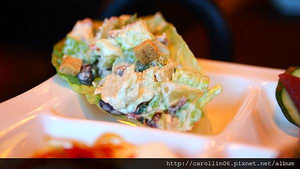 這造型特殊的沙拉是凱薩沙拉,不但是生菜,還使用我不敢吃的沙拉醬種類,所以我也請媽媽代為處理了。