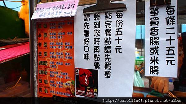 各種口味的大製配料內容牌子上都有,點餐時可得趕緊想好要什麼口味、不要哪些東西,一點完口味大腸就超級迅速的包好小腸和配料了。