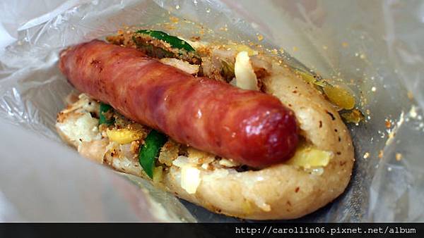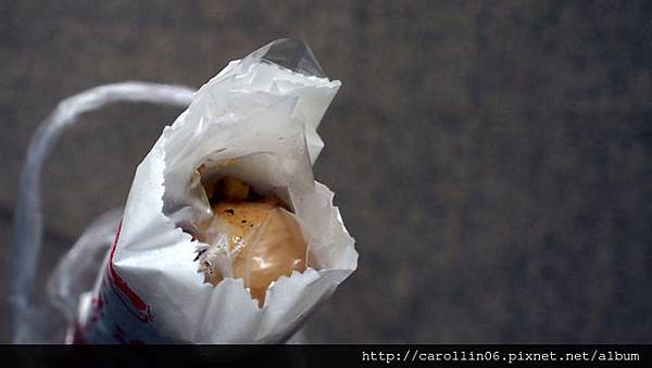 整個長這樣,糯米腸像包不住火的紙一樣包不住香腸,而塑膠袋也包不住濃濃的花生粉味XD