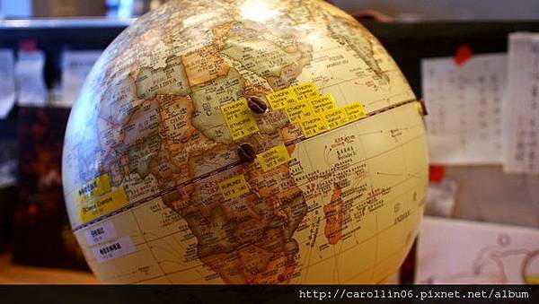 回到吧檯點咖啡,這天我們決定還要點杯單品喝看看,老闆就推了這顆地球給我們點,原來這顆地球就是菜單!