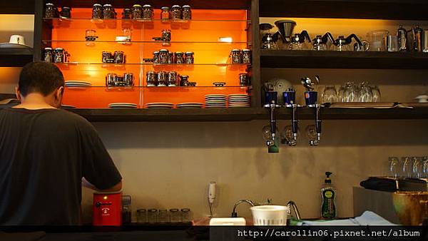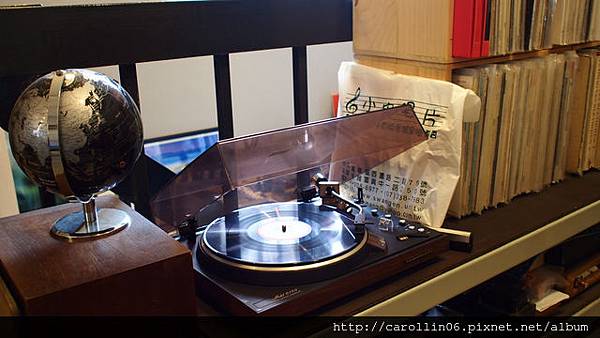 後來,老板走出吧檯換CD,才發現使用的居然還是黑膠唱片!雖然現在黑膠唱片還是很常見,但通常都只是唱片被當擺飾品,頂多再加個不能用的機器當裝飾,第一次看見店內真的用黑膠唱片放音樂的,讓我看了好一會~