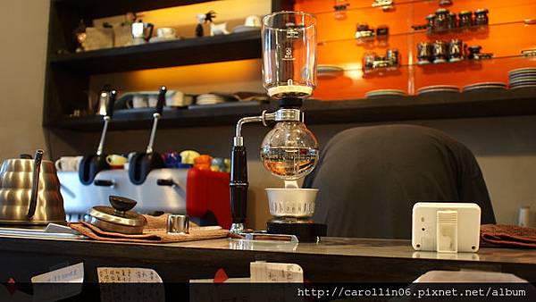 另一杯單品則讓老闆拿出了這嬌小的虹吸式咖啡壺,煮咖啡得過程還拿了碼表之類的東西出來,超認真的在對應秒數攪拌。雖然知道虹吸式有這樣的煮法,但台灣以虹吸式的店本來就比較少了,這樣一絲不苟的嚴謹煮法更是少見,即使回家之後也想照著這樣煮,等擺好器具、磨好咖啡豆時我也已經懶了...XDDDD