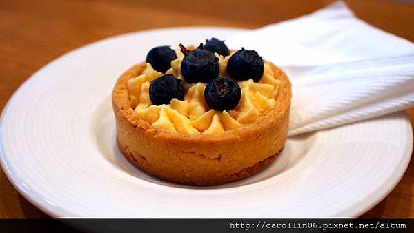 因為對咖啡太滿意了,男友又想試試甜點,但最鮮想選的這天沒有,於是經過老闆推薦,點了男友照理說根本不可能點的檸檬塔(他不怎麼喜歡摻了檸檬味的食物)~