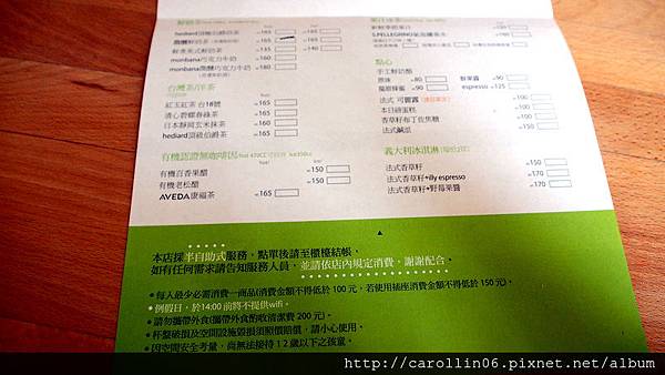 MENU上的東西其實不多,而且價位也不低,尤其底下綠色部分的註明讓我覺得觀感不是太好...