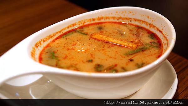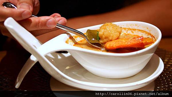 男友忽略了「酸辣」這兩個字,讓不大喜歡泰式酸辣味的他不是很習慣這湯的味道,但他強調依舊不會覺得難喝,而且裡頭的蝦球真的相當好吃。