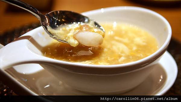 湯品3選1,男友選的是酸辣蝦球海鮮湯,我則是海鮮玉米湯~