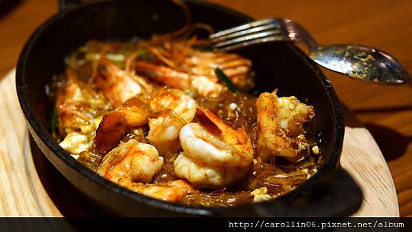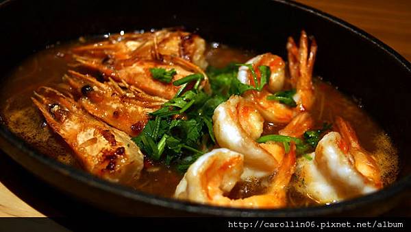 另一道主餐選擇的是咖哩海大蝦粉絲煲,這款以泰式咖哩和奶油入味,的咖裡味不是很容易歸類到底偏南洋還是哪裡口味(其實南洋咖哩我吃不慣),最重要的是很合我們倆的口味。