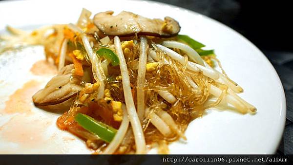 鐵板燒總要來個炒豆芽,這邊炒的還加了好幾種料,由於出現了青椒所以我不是太喜歡。最後,這餐在我們離開後,被我們說是來吃螞蟻上樹這道牛肉炒冬粉的。