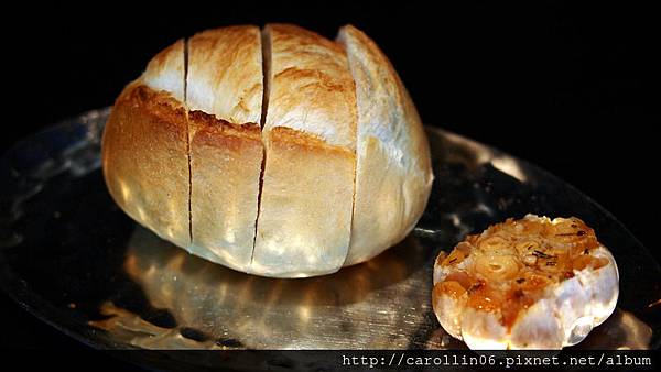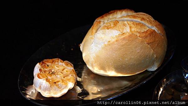 餐前麵包長的挺特別的,除了這法國麵包超級渾圓之外,最特別的還是一旁那大蒜!!