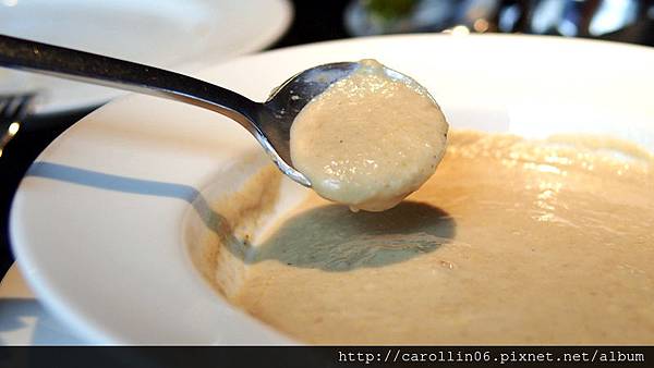 而這天喝到的湯是蘑菇湯,中間有貌似奶油的物體~