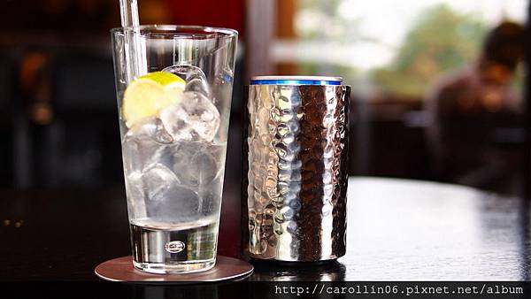 飲料部分我就請店員幫我想個檸檬口味的調酒,上來的這款配雪碧與檸檬的酒,酒與檸檬、冰塊直接在杯子裡,雪壁另外在一旁自行添加飲用。說真的,我不是很喜歡,喝起來非常的7up,太可惜一開始問的莓果類口味沒有