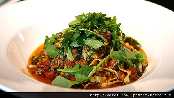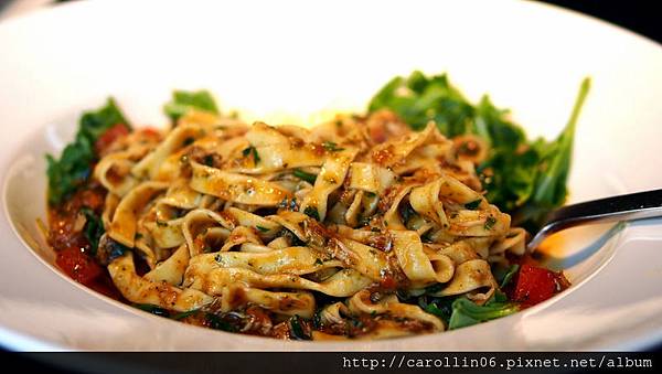 我點的這款番茄蘿勒義大利麵賣相實在不是太好,送過來的時候,看到愣了一會兒...