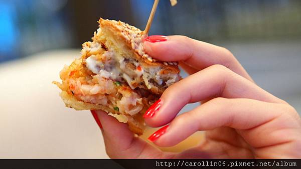 另外一份漢堡則是男友點的「脆炸軟殼蟹鮮蝦漢堡」,雖然不是獨家販售,但也算是比較少見的漢堡口味。一方面是我們都愛吃軟殼蟹,另一方面...替我向夢到的螃蟹報仇!!