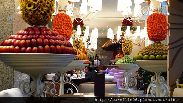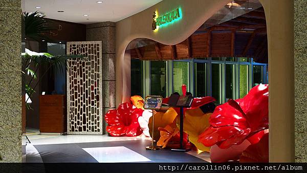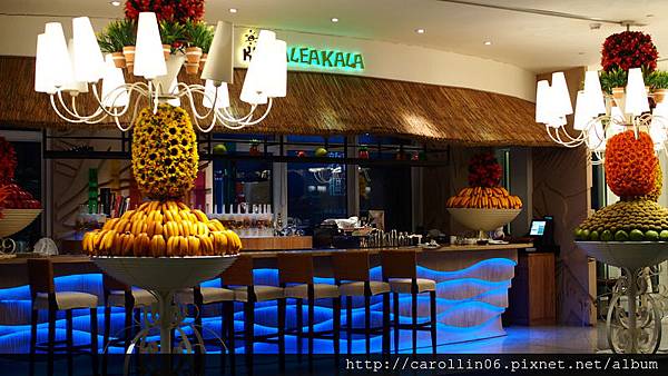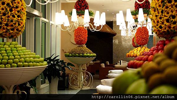 比較明亮的手扶梯旁這一區,也比較多充滿水果的擺飾,看起來熱帶感十足,經過我偷偷得確認這些是假水果,可千萬別拿來吃呀XDDDD