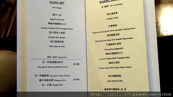 前面說了這間的價位其實和東區許多美式餐廳差不了多少,於是附上完整的MENU照片,不過礙於版面大小應該看不清楚,點擊圖片另外在相本看應該會清楚一些。