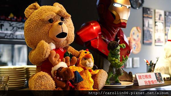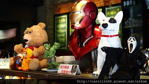 光是吧檯上就放了不少電影角色,不過其中幾個角色所屬電影很明顯和「英雄電影」這主題有點不相關啦XDDD