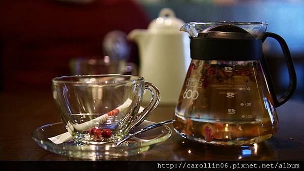 上面是薰衣草茶,下面這個則是玫瑰花茶,都是比較傳統道地的作法,單純熱水泡花,喝起來就是單純是濃郁花香味的水。