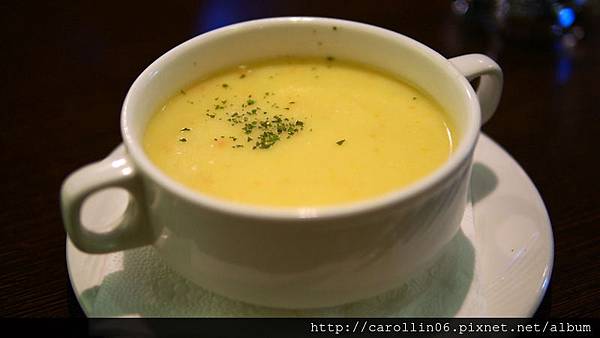 這天的本日濃湯是南瓜湯,這南瓜湯不難喝,不過很普通、沒什麼南瓜味,裡頭還加了馬鈴薯等料,喝起來和一般濃湯沒有什麼差異。