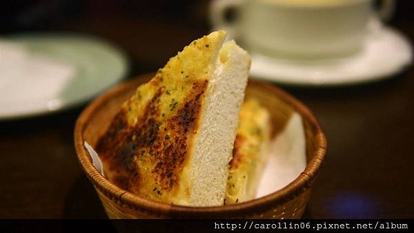 餐前麵包到是有點小驚豔,樣子和一般的就不大相同,沒想到看起來厚實居然超柔軟,表皮塗抹厚厚一層香蒜醬,表皮也烤的非常酥脆,相當好吃。