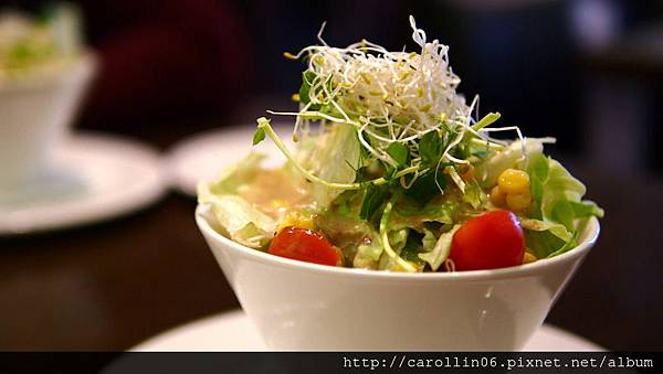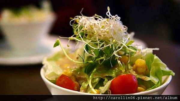 沙拉看起來相當乾淨,分量比起許多套餐的沙拉比較有份量,使用的醬是胡麻醬,不過和一般市售的胡麻醬口味又有些不同,感覺醋味比較重吃起來更清爽。
