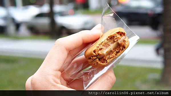 抹茶口味的抹茶味讓我有些失望,因為並沒有很突出的明顯抹茶味,反而是奶味十足的抹茶小點。口感上則是比咖啡口味更令人驚艷,雖然也是沒有脆殼,但一口咬下那好幾層的口感層次讓人很難不愛上。