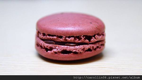 馬卡龍這種甜點口感如何其實看剖面圖就大致能夠有底,可惜因為難以用刀切出漂亮的面,很少人會放馬卡龍的剖面照讓人判斷,這次也就光是一個剖面照就讓我衝了XD