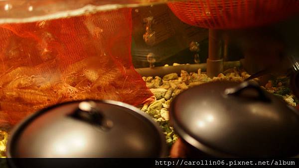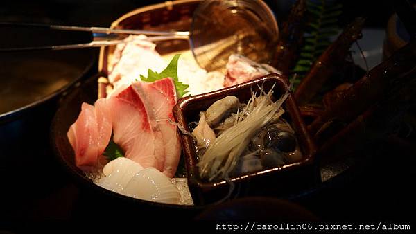 他們倆個鍋物的海鮮部分不大相同,一個是魚片↑,另一個則是魚頭、魚片、蝦、及蚵仔,這個服務人員在送上來的時候還特地交代說不能夠當生魚片生食。